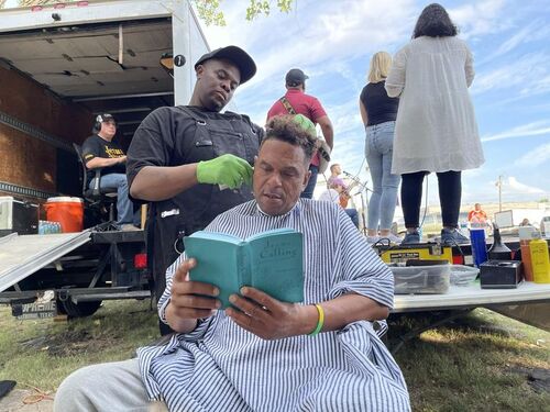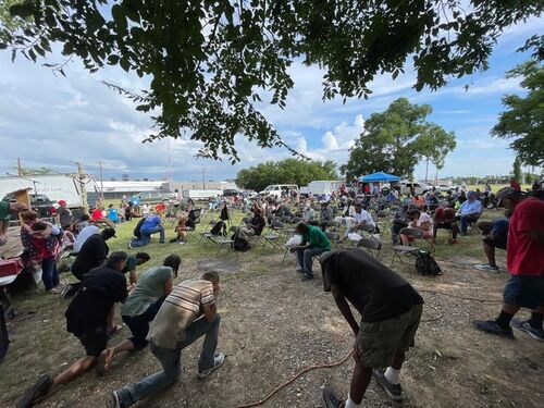 S.O.U.L.’s Mobile Church meets every Sunday rain or shine in an open field near Fair Park for praise and worship. It is a time to love our homeless community through prayer, food, clothes, hygiene packs, free haircuts, showers, and laundry services. We bring the field to life with our trucks containing food, generators, refrigeration units, warming ovens, a sound stage, tables, chairs, and tents, clothing, and even I John & II John in regards to the porta potties. We believe chains can be broken, and hearts changed through mentoring, discipleship, and intentional relationships